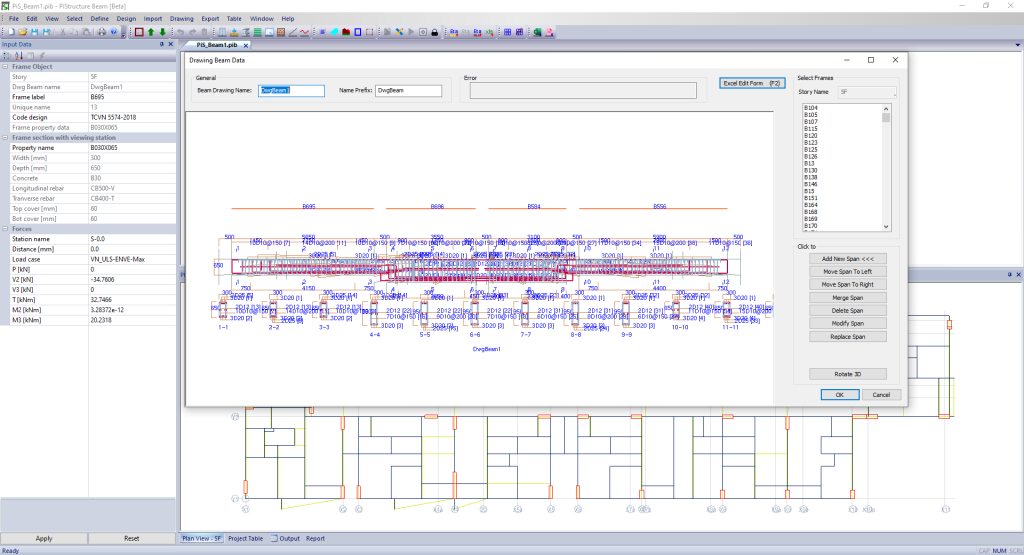 Phần mềm hỗ trợ Kỹ sư thiết kế tính toán, tự động bố trí cốt thép, triển khai bản vẽ kết cấu dầm bê tông theo 3 tiêu chuẩn: TCVN, ACI318 (Mỹ) và Eurocode.